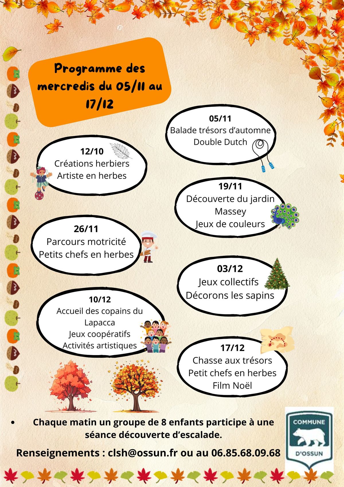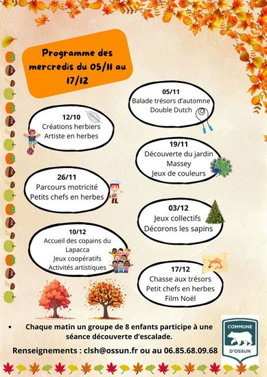 Les sorties à l’extérieur d’Ossun sont gratuites pour les enfants qui fréquentent le centre la semaine entière. Elles sont facturées 5 € dans le cas contraire.