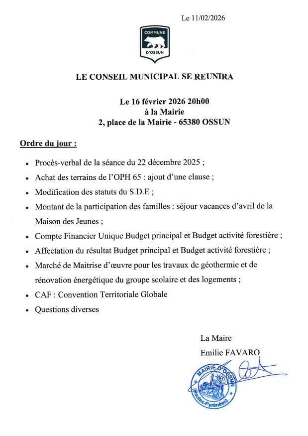 Délibérations Partager Accueil >Mairie >Délibérations REUNION DU CONSEIL MUNICIPAL 16/02/2026 20h00 COMPTES-RENDUS DU CONSEIL MUNICIPAL